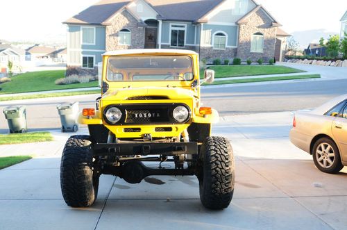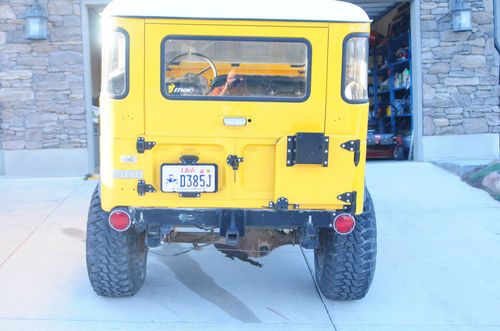 This is not the average cruiser. This has a rebuilt chev 350 with less than 6,000 miles on it,Turbo 350 auto transmission, Power steering conversion, FJ60 axels wich have disc in the front are wider and heavier duty.Axels have been moved out slightly to improve ride and 4wheel performance. The interior as well as under the fenders has been sprayed with rhino lining. The leaf springs are also off the FJ60 for better travel done at the same time as the spring over and High steer from SOR. The cruiser has Mickey Thompson rims and 35" Godyear MTR's that have less than 1,000 miles on them. New interior, black and yellow vinyl. Lots of details. I was looking at doing a family roll cage but when I decided to sell I figured that it was a personal decission so I didn't do it. The jump seats are the longer ones from a different year seating 4 in the rear. The front seats are the original 60/40 split bench so the cruiser will seat 7.