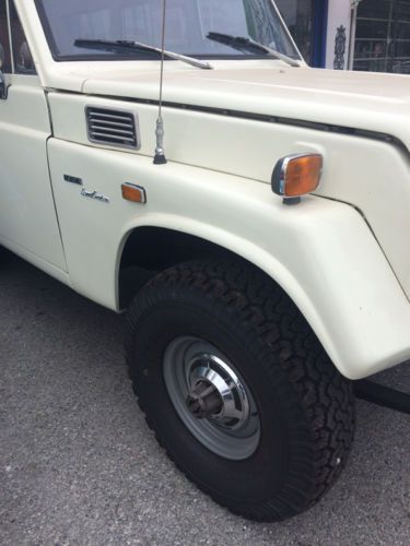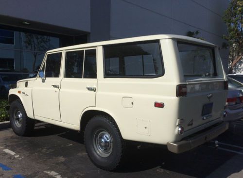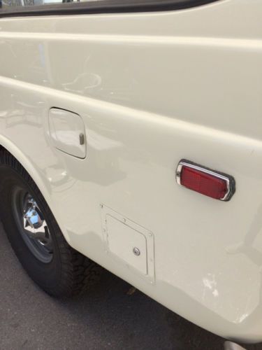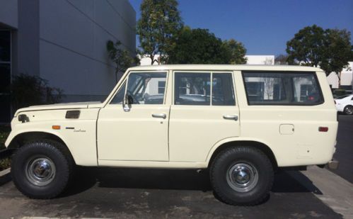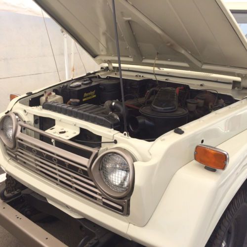 For sale 1971 FJ55 Toyota Land Cruiser. Fresh restoration including all new paint and electrical work. California truck all it’s life with current registration and CLEAN title. 117K miles on 3 speed (floor shift) F-motor 6 cylinder. Fresh Oil/Filter change and new spark plugs, along with new ignition coil and switch. Starts right up every time. Front Disc and rear Drum brakes. 5 brand new BFG A/T 33’ tires on new rims with correct paint color. Body has been stripped and repaid with metal as needed to eliminate any rust areas. Paint is correct Cygnus White (OE spec) color single stage gloss, so any scratches can be rubbed out with ease. Leave in all white or paint two-tone color of your choice. PO had installed a long range gas tank so there is a second gas door (locking) on the exterior driver side. Switch for gas in located on the floor of driver side. Interior has been properly restored using original door cards and seating. New dash pad and rear cargo mat (custom) has been made specifically for this truck. Original Toyota rubber mats are in front and middle areas. Includes full jack set and start crank, along with 2 original shop manuals. Recent exhaust work and FULL electrical work has been completed. Everything works except reverse lamps when backing (switch is ordered). Rear window works every time along with the horn, radio, interior lighting, exterior lighting, and all switches. Aftermarket Oil pressure gauge has been mounted. New headliner installed and seats are in very good condition. Overall a great truck ready for the ranch or road or upgrade to V-8. Please review pics and questions are welcomed. On Jun-05-14 at 10:35:42 PDT, seller added the following information: VIN # FJ55021540 On Jun-08-14 at 07:37:44 PDT, seller added the following information: Tailgate rubber (upper and side seal part) will be installed this week. That is the last of the rubber trim parts needed on this vehicle. Doors have all new seals on body. Extra Gas can included in sale. |