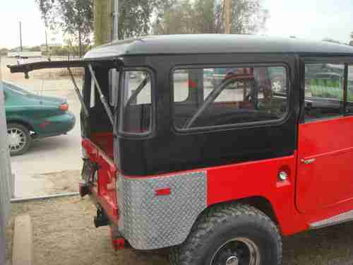 This 1972 Toyota Land Cruiser is in great condition. Runs great. If you know anthing about these trucks its that they are TANKS! Great for 4x4 trails. We have recently just had it painted and it also looks great. The seats have been re-upholstered with new fabric and foam. The front floorboards are carpeted in black to match the seats. Behind the seats in the back we bedlined it in red. Has had the original metal gas tank replaced with a new plastic gas tank.
