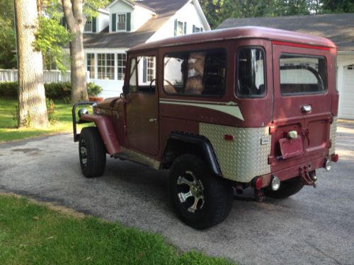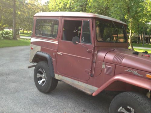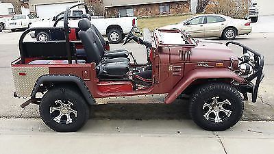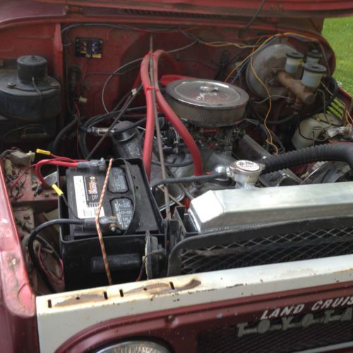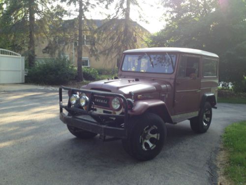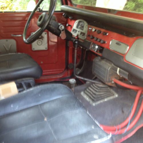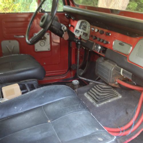 1973 TOYOTA FJ LAND CRUISER. It has spent its life in the Northwest (Wyoming) and consequently has no rust. This Cruiser is incredibly solid, however, paint has faded after forty years. Engine is a GM 350 and runs Great. The Transmission is a Floor mounted GM manual transmission and that is in great shape as well. All gauges work and the drivers seat has power controls. Suspension and steering are tight with no problems. Mechanically this Land cruiser is in very good condition and to my knowledge, in need of nothing.This Land cruiser also has the factory top and doors and a full roll bar. Minor prep and a paint job, and this FJ would look and run like new. Check out the photos, they say it all. She is in better shape than the photos show. You will not be disappointed.