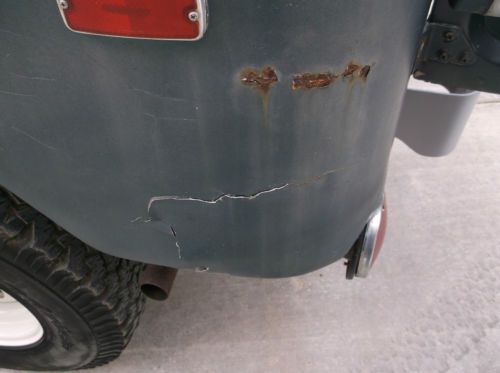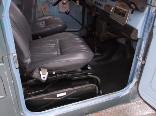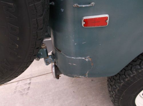 THE TOYOTA HAS SPENT ITS ENTIRE LIFE IN NEW MEXICO. IT HAS HAD TWO PREVIOUS OWNERS. THE SECOND OWNER HAD THE TOYOTA SINCE 1974 UNTIL I PURCHASED IT. THE TOYOTA HAS B.F. GOODRICH TIRES WHICH HAVE APPROXIMATELY 50% TREAD REMAINING. IT HAS THE FACTORY RADIO. THE DASH IS IN NICE CONDITION WITH ALL ORIGINAL GAUGES. THE TOYOTA HAS BOTH THE FRONT AND REAR HEATER. THE ORIGINAL COLOR IS THE LIGHT BLUE AS SEEN ON THE INSIDE. THE EXTERIOR HAS BEEN REPAINTED A DARK GREEN A NUMBER OF YEARS AGO; HOWEVER THE INTERIOR IS STILL THE ORIGINAL LIGHT BLUE.THE FJ40 HAS NEW GRAY FACTORY STYLE SEAT COVERS ON THE FRONT SEATS AND ON THE REAR JUMP SEATS. IT ALSO HAS NEW FACTORY STYLE BLACK RUBBER FLOOR MATS THROUGHOUT. THE WINDSHIELD GLASS HAS SOME SCRATCHES FROM THE WIPERS AND THE LEFT SIDE REAR CURVED WINDOW HAS A CRACK IN THE GLASS. THE REMAINDER OF THE GLASS IS IN GOOD CONDITION. THE TOYOTA DOES HAVE A FEW RUST ISSUES. THERE IS A RUST HOLE ON THE LEFT FRONT FENDER (SEE PICTURE). IT DOES HAVE SOME RUST BASICALLY IN THE BACK BODY SILL AREA WHICH IS TYPICAL. RUST REPAIR WAS DONE WHEN THE EXTERIOR WAS PAINTED GREEN HOWEVER OVER THE YEARS THE RUST HAS RETURNED DUE TO MUD BEING TRAPPED IN THIS AREA WHICH IS VERY TYPICAL (SEE PICTURES). THE FRAME IS IN GOOD CONDITION. THERE IS NO RUST IN THE FLOORS OF THE TOYOTA. WHAT YOU SEE IS EXACTLY WHAT YOU ARE GETTING - NOTHING HAS BEEN PAINTED OVER AND NOTHING IS HIDDEN. THE NICE THING ABOUT THE TOYOTA YOU CAN DRIVE IT NOW AND HAVE FUN AND WORK ON THE PAINT AND BODY WORK IN YOUR SPARE TIME IF YOU SO DESIRE. PLEASE EMAIL ME IF YOU HAVE ANY QUESTIONS. I REQUIRE A $1500 NON-REFUNDABLE DEPOSIT WITHIN 3 DAYS OF THE CLOSE OF THE AUCTION AND IT MUST BE IN THE FORM OF A BANK WIRE. THE BALANCE IS DUE WITHIN 7 DAYS OF THE CLOSE OF THE AUCTION AND PAYMENT MUST BE BY BANK WIRE OR CASH. THE BUYER WILL HAVE SUFFICIENT TIME TO PICK UP THE TOYOTA OR ARRANGE SHIPPING. PLEASE EMAIL ME IF YOU HAVE ANY QUESTIONS. |