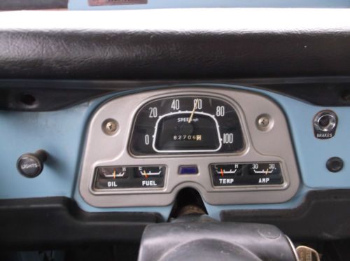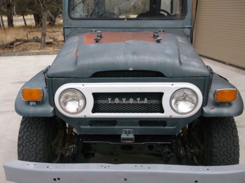 YOU ARE BIDDING ON A 1973 TOYOTA FJ40 LAND CRUISER. THE FJ40 HAS THE ORIGINAL F155 MOTOR WITH THE 3 SPEED MANUAL TRANSMISSION ON THE FLOOR AND FOUR WHEEL DRIVE. THE TOYOTA RUNS AND DRIVES GREAT WITH 82,000 ORIGINAL MILES. THE FOUR WHEEL DRIVE IS IN VERY GOOD OPERATING CONDITION AS WELL AS THE TRANSMISSION. THE TOYOTA HAS 411 GEARS. MECHANICALLY IT IS IN GOOD CONDITION.
