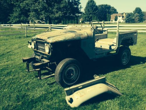 This is a Project vehicle. Needs extensive bodywork. Frame is in good shape and looks like it was PORed. Wiring mostly intact. It was running when I pulled it into the barn last winter but I am having a ground problem and do not have the time to track down. Tailgate and windshield frame are included but are pretty rotten. This is a project vehicle and will need a restoration. I was going to replace the tub with one in better shape but found a different FJ40.