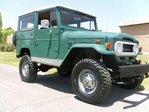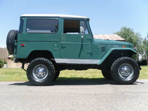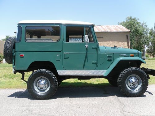 Up for auction is a 1973 Toyota Land Cruiser. This freshly restored vehicle comes out of the stable of Classic 4x4 Co in Las Cruces NM, who specializes in FJ-40's. This FJ-40 has spent it's entire life of the Beautiful Southwest, where the climate is hot and dry. The Drive train starts with the original 6 cylinder engine, that runs like a top. It has a 3 speed transmission that goes through all the gears with no issues. The exterior has been stripped down to bare metal, where there lie a completely rust free body. The body was then painted back to its original color. The interior has been completely redone, and is in the condition it was when it rolled of the show room floor,it still has the original Am-Fm radio, and rear heater. The Suspension has a 2.5 inch Pro Comp lift, which includes, Shocks and Springs. The Tires are Brand new Mud Terrains, and complete that perfect stance, that is not to big. These Toyota Land Cruiser's are getting hard to find, and are highly collectable, especially in this condition. I would not hesitate to drive this thing Cross Country,as there really are no mechanical issues to speak of. Please Bid with confidence, as this truly is a very well preserved FJ-40. There will be a $1000.00 deposit due within 24 hours of Auction end, and the remaining balance due within 3 days, Bank to Bank transfer only. These terms and conditions are non negotiable, so please understand them before bidding. I have a perfect feedback history and expect the same of the buyer. I will answer any and all questions in a timely manor and will make myself available to the shipping co. of your choice at buyers expense. Thank you and Happy Bidding!!!!