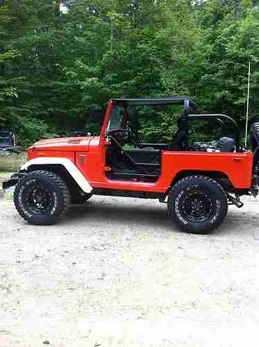 1974 Toyota FJ40 60k original miles. Complete restoration, with power steering conversion, CD player satellite compatible,bed liner interior, Optima battery in a ballistic fab battery box, webber carb, swing away tire carrier with high lift jack mount and full size spare, 5 new Cooper STT mud terrain tires,relocated fuel tank(aprox19gal). Custom tube doors, bull bar ,10k winch,front axle conversion to disc brakes, Borla exhaust, Bikini top also hard top fiberglass almost perfect with perfect rain gutters included but not same color as vehicle with original doors good cond. $500 deposit required at end of auction balance due within 5 days of end of auction