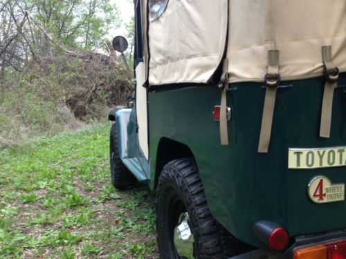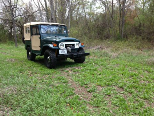 F.5 3.9 Engine First year 4 speed on the floor Rustic Green original matched paint Barn find, stock daily driver restoration Extremely rare khaki OEM reproduction soft doors and top Dependable and road trip ready I found this cruiser in a gentleman's airplane hangar in north Texas almost two years ago. It had been a Texas vehicle it's whole life and was all original down to the factory soft top bows. The only rust issue was in the front corner floorboards where water had collected from it sitting with no top. The usual FJ40 rust spots in the rear quarters and sill were in fantastic shape and needed no work; truly a survivor. After adding a new battery and changing all the engine fluids, I bottle-fed the carb and it started right up! A testament to the longevity and dependability of the classic FJ40. I found a replacement heavy gauge steel upper floorpan and had it professionally welded in with the original screw grommets so everything fit flush and bolted right in. I did all the paint work with a friend and used the original matched paint code #621 Rustic Green. I am a Land Cruiser enthusiast and restorer in northeast Texas and I take pride in giving these extremely dependable machines new life. I find only the best candidates with little to no rust and take my time. I use every OEM part that I possibly can, and the rest I source out from local Landcruiser specialists. Every mechanical part is combed through and replaced if faulty or worn out. I change all the fluids down to the differentials. I intend for the cruiser to be a daily driver and meet the needs of today on and off the road. Strong stock suspension with heavy-duty Monroe shocks and steering stabilizer. I added a set of 5 Goodyear MT/R Kevlar tires on the OEM steel wheels. Highly desirable Warn locking hubs and Warn 8274 winch mounted on the stock front bumper. All of the gauges and interior lights are in working order. The interior is brand new, two buckets and two rear jump seats, professionally recovered by one of the leading Cruiser upholstery guys in the country. This is the best example of an original FJ40 that I have seen, down to the original floor mat. The Cruiser has a brand new radiator and thermostat, motor is strong and there are absolutely no leaks. Original drum brakes have been updated with all new wheel cylinders and a new master cylinder up front. Carburetor has a fresh rebuild and the gas tank is brand new. I just returned from a 250 mile weekend trip without issue. This is a labor of love for me and I want to continue my passion of keeping old cruisers on the road. I have an FJ55 project I am ready to start, so on down the road this one goes. Please feel free to ask me questions. I will include photos, but if you need anything specific, just let me know. |