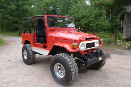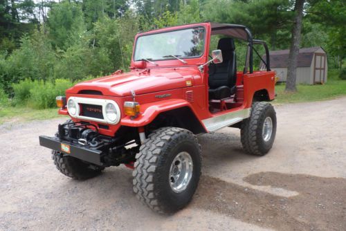 1975 FJ40 CRUISER VERY NICE SHAPE. STOCK 6 CYLINDER WITH 4 SPEED, PTO WINCH, WEBER CARB., NEW SEATS AND MOUNTS, NEW SOFT DOORS STILL IN THE BOX, NEW EXHAUST, 35 X 12.5 SUPER SWAMPERS. RUNS AND DRIVES EXCELLENT. STOPS GOOD WITH 4 WHEEL DISC BRAKES. HATE TO SELL MY CRUISER BUT MUST MAKE ROOM. I HAVE GIVEN IT ALOT OF ATTENTION AND CARE PUTTING IN A NEW HD BATTERY, ALTERNATOR, AND CABLES, ALL NEW COOLANT HOSES, HEATER CORE AND HEATER VALVE, THERMOSTAT, AND COOLANT, STEERING STABILIZER, LIGHT LENSES. DOES NEED SOME SMALL REPAIRS BUT IS READY TO DRIVE AND HAVE FUN! COMES WITH CONSOLE AND SPEAKER BOXES.