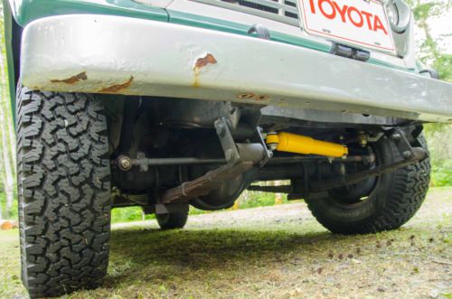 Miles 74,752 / 4 Speed / 4 Wheel Drive / Manual Steering Drum Brakes / Stock Height / De-smogged THE GOOD - OEM Toyota Alternator (new rebuilt) - OEM Toyota Voltage Regulator (new rebuilt) - OEM Toyota Belt - OEM oil sending unit, water temp sending unit - OEM plugs, wires, cap, rotor and oil filter (large type filter) Castrol 20/50w - OEM Toyota Coil - Starter (Cruiser Corps) - Radiator full flush kit done at LUMS TOYOTA / new radiator hoses / PCV valve, gasket and hose / OEM thermostat - Pentronix ignitor kit - Rebuilt carb / new K&N filter / new fuel filter, rubber lines / OEM venting gas cap / fuel pump - New tie rods, rebuilt center arm, full alinement - New battery cables with disconnect - New master cylinder (ASIAN) / front brake hard lines - New parking brake shoes with rebuilt kit - Full front & rear brake job / New shoes, braided lines (stainless), new wheel cylinders, DOT4 fluid - New RoundEyes headlights (nice upgrade from sealed glass units) - Rear glass tailgate works. Front dash switch & rear tailgate key switch work - New top rear window weatherstrip. - New Old Man Emu steering stabilizer - BFGoodwrench A/T 30" tires on stock steel rims / OEM hub caps - Four speed transmission shifts smooth, four wheel drive works, front manual locking hubs are stock OEM Toyota - All lights work. Dash, dome, headlights (hi/low), - Front and rear heaters work. Wipers/switch works. Hazards/ - Inside vinyl door panels are uncut (front/rear), all windows crank up/down. All doors lock with keys. No rock chips or cracks on windows. - Extra parts, front doors (with glass), repair manuals, Yakima rack, etc. I have many receipts, known history back to early 90's. This Land Cruiser was originally from Puget Sound area in Washington State. - Clear Oregon title with Oregon Tree plates. - 2F engine not turning. As of (03/19/2014). Needs rebuild, confirmed by Toyota mechanic. This Land Cruiser was my daily driver, and I always used Toyota OEM parts when available. - Rust in the usual areas. - Needs new exhaust pipes, (New HEADS UP - Very, basic vehicle! No power steering, no disc brakes, no air conditioning, no stereo. - Not a "Gucci" Land Cruiser, it is bare bones, stock rig. For more photos, send me an email. |