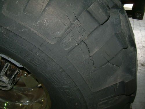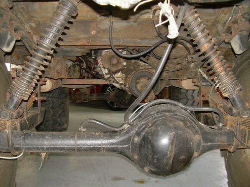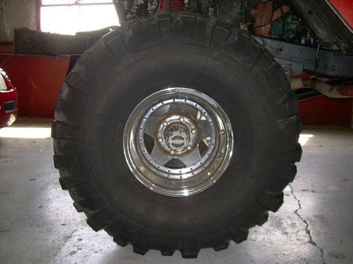 The truck has 39 inch, super-swamper tires. The tires are not in great shape. As you can see from the pictures, the tires are a dry-rotting partially, and have cracking throughout all 4. The pictured tire is the worst of the set. The truck has a 6-inch lift kit on it. It has a new transmission, 3-speed with a floor shifter.