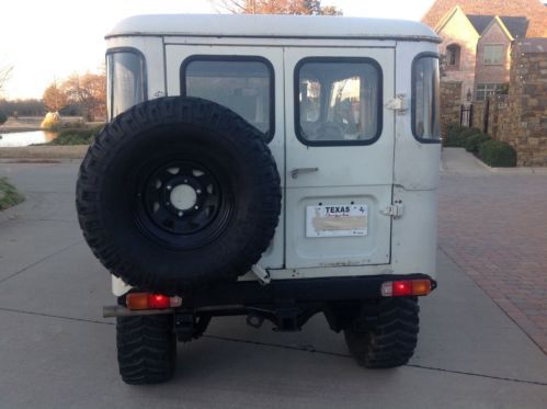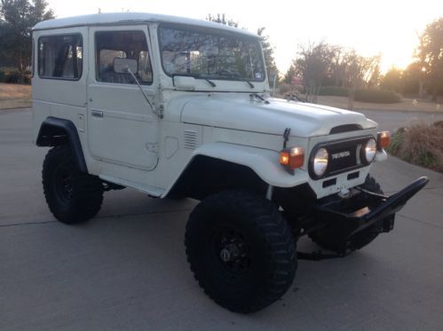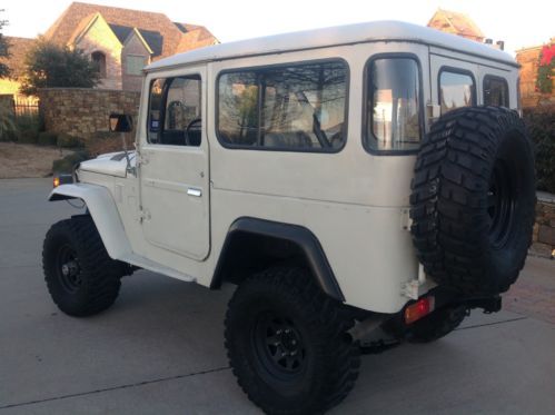 I am selling a 1976 Toyota fj40 that is in great shape and runs very good. It has the original Toyota Cygnus White paint and the inside bed and front floor boards have been lined to protect them. Those are the areas that rust the must and this FJ has no rust in those areas. It has the FJ engine that runs great. I have just tuned it up with a fresh oil and filter, new spark plugs and wires, a new distributor, a new battery, new radiator with all new hoses, a new alternator, a new fuel filter and a new air filter. This FJ is not for from being a $20k Landcruiser. I have started to remove the weather stripping from all the doors. I have new ones, but I am not going to put them on, as the new owner may or may not to want to paint the FJ. The outside is all complete and very little rust for how old she is. The previous owner put a metal covering over the rear quarter panels. There are no jump seats and the previous owner covered the front original with covers. I have removed the headliner, so a new one could be put in place pretty easy. Couple different options from the few suppliers out there like Cool Cruisers right here in Texas.