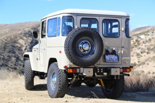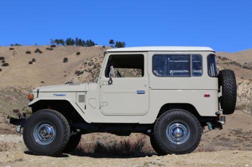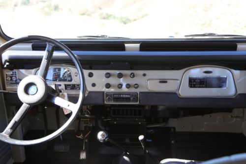 TLC Stage Three Restored FJ's are the best in the world. In short, it involves a complete tear down and rebuild... leaving no stone unturned. We focus on quality OEM Toyota parts. Body is media blasted to raw metal then repainted using top quality materials. Before reassembly, the body is polyurea coated on the bottom of the tub and fenders, and on the inside floor surfaces. Inside of doors coated in Dynamat. All OEM hardware re-plated in factory finishes, exterior hardware upgraded to stainless steel. Nylon washers applied anywhere you may one day remove a panel, to protect the finishes. Chassis and all trim components are all media blasted to raw metal then powder coated (including rims, bumpers, mirror arms, roll bar, interior trim…). OEM seating restored with new foam, stock stay straps and improved marine quality vinyl. Fully rebuilt or new transmission, transfer case, differentials, steering system, exhaust, intake, suspension, fuel system, all clutch system parts and more. This FJ is perhaps the finest anywhere. Restored as delivered new back in 77, with the exception of LED lighting and improved suspension and 33" tires. Runs and drives as you would expect. A Cruiser of the highest quality, no excuses. An exceptional investment.