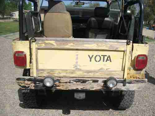 1978 Toyota FJ40. Stock 6 cylinder engine. typical rust in typical places for older cruisers. Disk front brakes, drum rear. runs good. I just put a brand new weber carb on it. It has brand new 33 inch tires and it runs and drives. It needs a tailgate or rear doors. Previous owner used wood for tailgate but I'd change it if I were to keep it. This thing could use paint or you can use it as a crawler and leave it be. has stock rear jump seats and bikini top. Has soft top in poor condition and soft doors with a couple holes in them. I've owned lots of cruisers and this is the year that is more desirable because of the front disk brakes and thick doors. It also has a Superwinch on the front bumper but I don't know the capacity. It does work, I've used it. Feel free to email me with any questions and I can deliver within 500 mile radius of Ontario Oregon for a dollar a mile. You won't be disappointed with this cruiser. I have too many Toyotas and need to sell it.