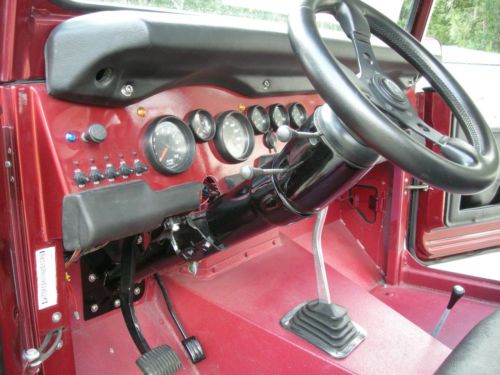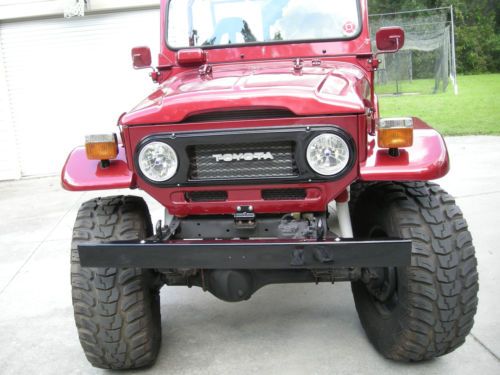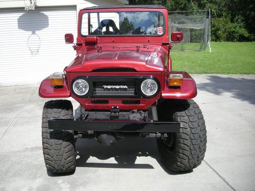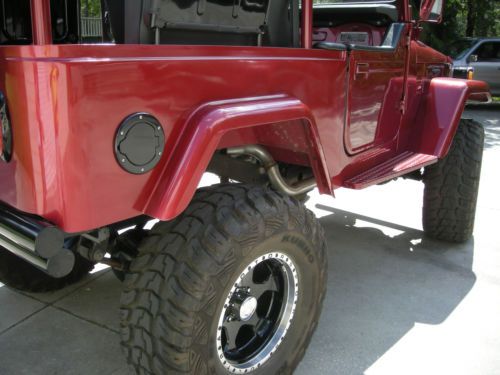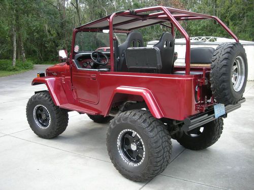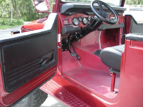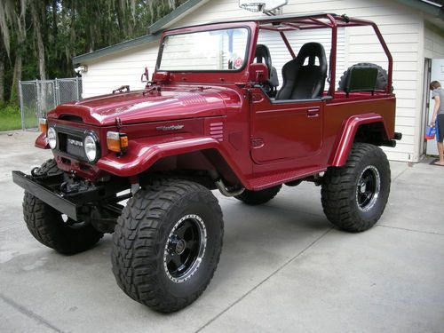 1978 Toyota FJ40 Land Cruiser. Frame off restoration 2 years ago and only 894 miles since. Awesome truck. DETAILS: 10" stretch. Aqualu Aluminum body. Aluminum windshield, cowling, toolbox, tailgate and fenders. Hood and doors are original. Interior floor is color matched bedliner material. Custom bumper with receiver. Custom spare carrier. LED tail lights. Custom roll cage. 38" 15.5 x 18 Kumho Road Venture tires on 18" Ultra wheels. Rear axle limited slip. Front axles have rotated knuckles. Power steering with tilt wheel. Spring-over. Front brakes are disc with new calipers. Rebuilt 350 V8 and 3 speed 350 turbo auto transmission both with only 894 miles on them. The motor was mounted slightly rearward and the Optima battery is rear mounted for best weight distribution. Aluminum radiator with electric fan system. This truck is in excellent running and cosmetic condition. Restoration was very professionally done. No shortcuts were taken. The only known issues are that the temp gauge is not reading accurately and the dog gnawed on one of the seats belt clips. Title in hand. The truck can be inspected with 24hrs notice. We are about 45 minutes from Tampa airport. 1000.00 paypal deposit required with 48 hrs of auction end. Final payment will be cash. May work with wire transfer or cashiers checks but the truck does not leave until payment is 100% confirmed. If you wish to have the vehicle shipped you will need to make all the arrangements. Bidders with no, low or bad feedback need to contact me before bidding. 727-424-6441 John. One last note: The truck was not built with show in mind but all the subwork is show quality. It would'nt take much to bring it up to that level. Valve covers, air cleaner and a little detail work would move this truck from awesome to stunning.