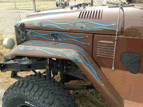 This Okie rig is ready to roll in-town style OR crawling the backwoods. It's got a sweet brown diamond plate bedonkadonk, drop gate rear entry, wicked blue pinstriping and some choice cammo pattern-see those photos.