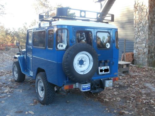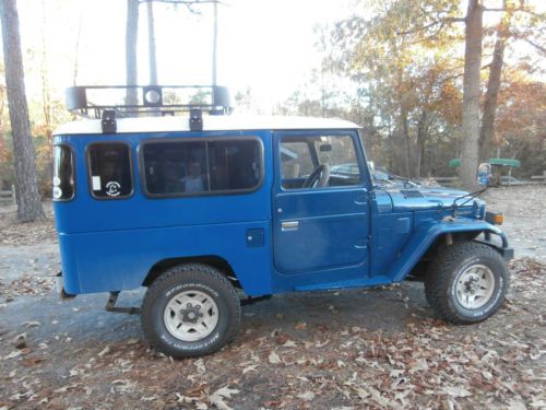 1981 Toyota BJ44V Land Cruiser. Ebay won't accept VIN # BJ44004081 see pictures. Right Hand Drive,PS, PB, AC 85% rust free, 2B diesel 24v engine runs great, 30 seconds of smoke on a cold day start up. Has new water pump, just had a knuckle rebuild done, new clutch slave and master cyl.,extended shackles, custom made front bumper. Roof rack, 1yr old 31/10.50 BFG's. 43k kilometeres on new speedo 116k on old total 159k km= 99,000miles (unverified). Tons of extra stuff (about $2k worth) including all new window and door seals (has new ones on it now), new in box clutch and clutch plate, new in box disk brake pads, new in box tie rod end kit,custom half doors (unfinished), highlift jack, emblems, bikini top, hoses, filters, nuts, bolts and screws, original split rim spare with original tire, 2 extra aluminum rims same as on the truck.Royal purple oil changes with WIX filters every 5K km. The paint doesn't match where the P.O. had the rust repaired but it never bothered me and doesn't affect the truck's performance. Titled and registered in NC, just passed safety inspection, has been my DD.