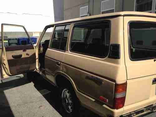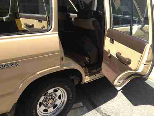 1983 Toyota Land Cruiser FJ60 - Color is Tan- I bought this Cruiser a few years ago and totally restored it and now i have to sell. I need the cash! This Cruiser up until two years lived on a ranch in Texas, it has had several owners within one family. It has never been off road and has been women owned by myself the last two years. Now the details of this gem! RUST FREE! Cruiser in Registered in CA.. tags good through 2014, the title in hand and clean. The work that has been done: all new brakes, calapers,brake shoes, cylinders, front roaders, seals, wheel bearings, vavle adjustment, tune-up, new air pump, new battery, oil change, new tires, Original floor mats and manuals. all original except for the high proformance carborator, no leaks, I have service invoices. NO RIPS or STAINS in seats. There are in few cracks in dash from the sun. milage is original extremely low at 80k - women owned never been off road-