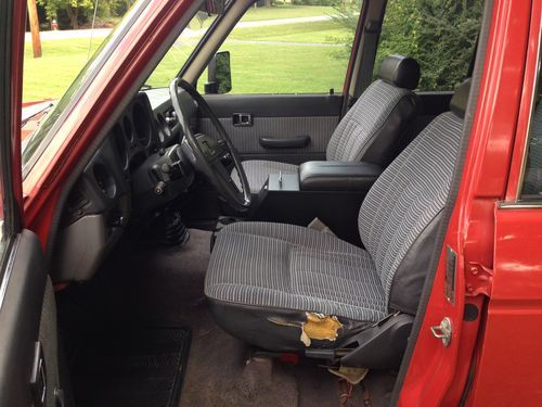 Unlike most of the FJ's, this is not a rust machine. In fact, it is one of the cleanest original bodies I have seen; she even has factory paint. There are only a handful of very small rust spots. It has never lived in the rust belt. The original AM/FM radio works. The original AC blows nice and cold. Both front and rear heaters work. Power steering system is good. And, almost all of the FJ issues have been addressed within the last two years. Stock emissions system, with all rubber lines replaced (has always passed in Hamilton County, TN though once I had to go through twice...these beasts are notorious for failing and this one runs clean!); current compliance certificate good through mid-late October. All rubber in cooling system replaced. No exhaust leaks at or around the manifold (they almost all leak). The head was removed in order to replace the exhaust studs and refit the manifolds...all gaskets (including head gasket) were replaced and a new stainless pipe to the EGR was fitted. I wanted mine to be right). Tires are serviceable for some time to come. Interior is clean. All accessories work, including the headlight squirters and the fan for the carb for hot starts; not sure if the rear defrost works, actually, but everything else definitely does, even the interior lights and the rear cargo light.