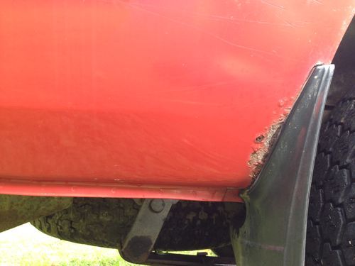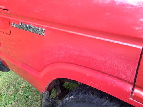 As stated above, there are just a few small rust areas, nothing crazy, no cancer, nothing structural, ect! VERY nice Land Cruiser! Get's a lot of looks and turns a lot of heads! The worst 2 rust spots are pictured below along with the others. There is one on the driver's inner door area near the jam...not on the body but on the door. The other is in the exact same spot on the passenger door. Again, not on the body, but on the door. The worst spots on the body are VERY small and right wear the mud flaps attach to the rear wheel wells...common. The tear in the driver's seat is just on the vinyl section, not the woven pattern area. The windshield has a star very low in the middle, not anywhere near line of sight. Rear bumper has a dent. Passenger rear quarter has some ugly feathered paint. The roof has a very odd areas when the paint appears to be thin. No clear coat peeling, but it appears you can see the primer. There are pictures of all these areas below.