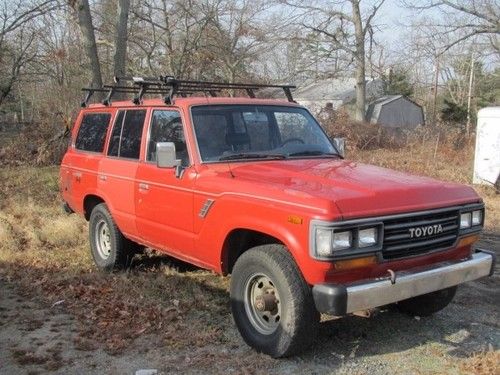 Up for aution today is one of the most sought after and collectable SUVs on the road today. This is a 1988 Toyota FJ62 LANDCRUISER. This CLASSIC durable SUV has 4X4 powertrain with 5 factory chrome rims,- 5- 31/10.5/R15LT tires.This CRUISER is in GREAT running condition ,but the body and interior does need some TLC. The body has some dents and rust areas-by the drivers side lower rear quarter panel,bottom of doors,driv side rear wheel well,and back tail gate. The interior -driver seat is badly worn needs to be re-upolstered,rest of interior is fair. This FJ Cruiser is nicely equipped -it has automatic transmission, PS,PB, 4X4 powertrain,dual front bucket type seating, Factory full size roof rack, 4- 31/10.5/R15LT tires,am/fm stereo radio(works), factory A/C(n/w), tinted glass,HD fr and rear bumpers,1 extra full size spare, 5 Factory CHROME rims, plus much much more. I was in the process of restoring this FJ62 Landcruiser-so i will tell you some of the new items we recently purchased for it.1-new window regulator,2-new battery, 3- battery tray, 4-new transfer case shift solenoid($189.00),bumper end $59, another bumper end $38.00,new rear license plate light and assembly $129.00,new exaust $300,misc light , bulbs,misc servicing,. This vehicle can be driven AS-IS or taken as a project and either fully or partially restored. You can drive it as you are restoring it. Im gonna be sorry to see this one go because i was really looking forward to restoring it. I will be selling this 1988 Landcruise as a Dealer-with NO-RESERVE-sold AS-IS. This means the highest bidder will win this vehicle REGARDLESS of the price. Since it is being sold through a dealer-there is a mandatory $299.00 dealer documentation fee.If you are a New Jersey resident -a 7% sales tax must be collected-all other states will pay their own sales tax at their own Department of motor vehicles.We also have temporary in state AND out of state TAGS available. Please do not bid on this item if you do not have all of your funds available to you. There is a $300 non-refundable deposit required -48 hrs after aution ends.Winning bidder must make their own arrangement to pick up this vehicle-there is no delivery or shipping available.Thank you and GOOD LUCK.