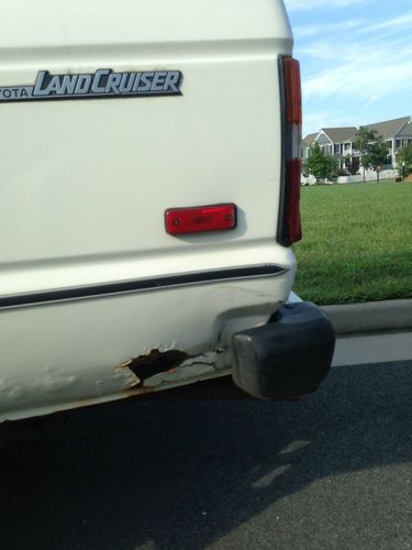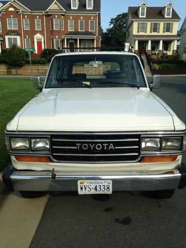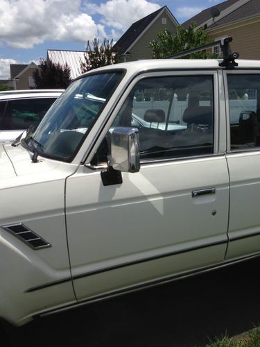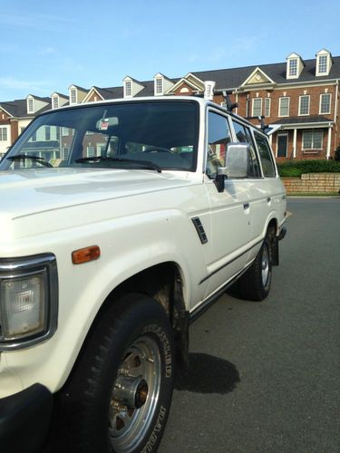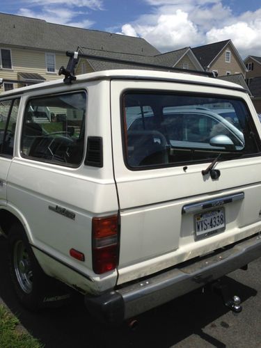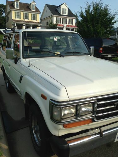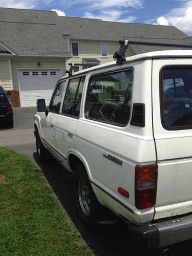 1989 Toyota Land Cruiser FJ62. White with gray cloth interior. New tires and wheels in 2012. 209,000 miles, automatic trans, AC, new radio with bluetooth and ipod inputs. Body has rust in typical Land Cruiser locations. Interior is in great shape for the car's age. Dash visor has crack over instrument cluster. Runs well. I've taken it on several long trips since purchasing it. Love the car and am selling it reluctantly. Will throw in OEM shop manuals and Yakima roof racks (cross bars and gutter mounts) and trailer hitch. PRICE REDUCED
