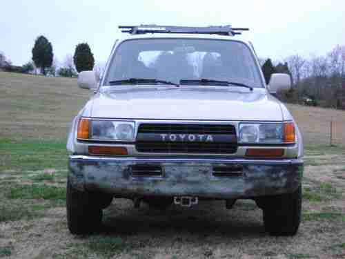 I have a 1992 Toyota Landcruiser for sale. It needs to be cleaned in a bad way. I will let you do that. Has some rust on upper part of lift gate because it was hit and very small bubbling on small spot above windshield. Body and underneath are very solid. It needs driver side seat recovered. Other than that a little TLC is all it needs. Does not burn oil, does not leak oil, drives great. Four wheel drive works perfect Hi and Lo. Center Differential locks work as well on four wheel drive. I would drive this landcruiser anywhere. It is very reliable. The air does not work. I dont know why. heat works great. Tires are like brand new. I drive it daily. It is for sale locally. No reserve, hard to find, dont let this one slip by you. You will not be able to buy one again at this price!