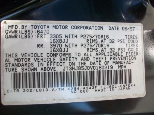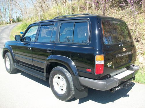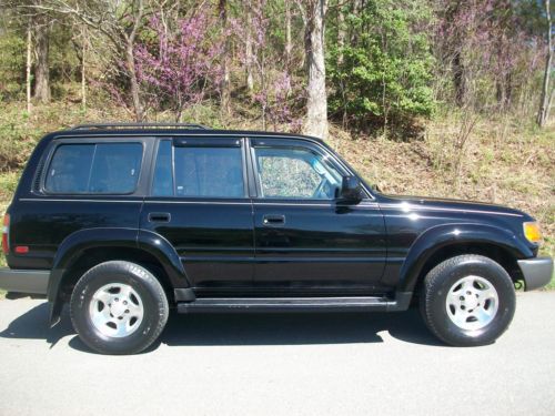 This auction is for a 1997 Toyota Land Cruiser. It has a 4.5L engine with an automatic transmission.. It is AWD with high and low range and differential lock.. It has the third row seating with seat belts for seven.. This vehicle is fully loaded with all the power options, including dual power front seats.. It has a sunroof, running boards and a luggage rack.. We got this beautiful vehicle from a local Lexus dealer and installed a new set of P275/70R16 Michelin tires.. It is ready for the road.. The interior is in great shape and there are no issues with any of the power options. All of the glass is good and the original paint still shines.. The pictures should show just how nice this one is.. I drove it today for the pics and it runs great and shifts smoothly.. It stops straight and is a pleasure to drive. There are no disappointments with this one.. We are selling this vehicle "AS IS"..We are a Ky dealer and we follow all Ky Dealer guidelines.. A 60 day temp tag is available for driving the vehicle home. Proof of insurance may be required.. A $500 non-refundable deposit, preferably through Paypal, is due at the end of the auction and full payment is required within 1 week..You can do a wire transfer the next day or overnight the full payment if you don"t have Paypal.. We can help arrange shipping at the buyer's expense. We can store the vehicle for a week or so and there is no charge. Also we have NO DOC FEES! If you have any questions about the deposit, the vehicle, shipping or payment call Jim at 606-923-2753 BEFORE you bid.. Bid with confidence. Check our feedbacks. You will find us easy to deal with.. Thanks for your interest in our auction and "GOOD LUCK" bidding.