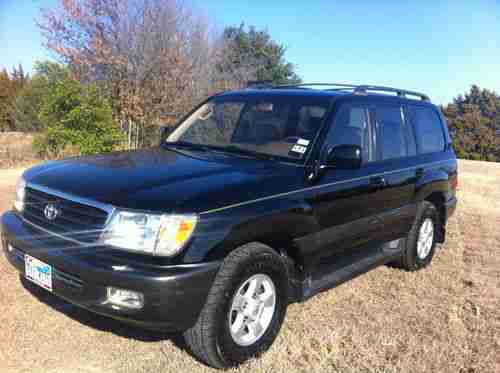 Up for sale is a highly desirable 100 series Toyota Landcruiser in excellent condition. I am a Landcruiser enthusiast and collector in the Dallas area and I purchased this vehicle from the previous owner who was an engineer in the Houston area. This vehicle has been meticulously maintained by Toyota dealerships throughout it's life and only has 140,000 miles. The UZJ100 series has the powerful 320 hp V8 motor that has been tried and true on the highway as well as the trail. It is not uncommon for these vehicles to go well over 300,000 miles with no trouble. The leather interior is flawless; there are no rips or tears anywhere. It runs and drives as you would expect from a vehicle of this caliber. The timing belt and water pump were both dealer serviced at 114,000 miles and the tires are new Yokohama Geolander with only 10,000 miles on them. Steering and braking system are excellent and all power windows and wipers function perfectly. This vehicle comes with interior comfort features such as third row seats, rear drop down DVD entertainment, and heated front seats. For off-roading it has the desirable rear differential locker. The exterior and paint are in great condition and it has recently been waxed and buffed. There are only very minor scratches on the hood from highway driving and a few small rash areas near the wheel wells. All mechanics are in perfect working order and have been well-maintained. The motorized antenna has been disabled and can only be operated manually; however, it does function properly. I have the clear Texas title in hand. Please don't hesitate to ask me any questions and good luck bidding!