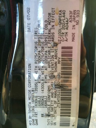 Well Maintained --- New tires for snow-etc (we go to mammoth often ) We purchased in around 2006 from the Dealer certified with around 26,000 miles - We use this primary for vacation and visiting my husbands children in Arizona Has the 3rd row option - They have not been used but we still have them for the sale of the car. (second owner) All beige or tan interior with the wood look on the panel as in picture We have mostly used the local Toyota dealer and had it checked recently and they said it is in excellent mechanical condition. All the maintenance is current as we did not plan on EVER selling this car!! They run for 0ver 500,000 per our dealer -- Please have it checked if you pay for the inspection I will take it to the dealer. ---- All power windows sunroof and seats in front all WORK perfectly ---- Heated seats in the FRONT a must for me ---- Power sunroof and power seats Great for family kids we have a two year old and it has the proper hooks to install the britax car seat We love love love this car and we have separated and it doesn't make sense to let this not be used for what it is known for-- I purchased this car as one of the few cars that still has a tailgate. If you are like me I love to go in the mountains and sit on the tailgate with picnic -- or a sports game... I am only 5 feet tall and this car is extremely easy to drive- great turning radius compared to the toyota Sequoia (which is why we purchased this car) I use to own a toyota forefunner-- this is much more luxurious. Top Rated: J.D. Power named the 2002 Land Cruiser as the highest ranked in Overall Initial Quality Mechanical in its class Please email with questions we want a happy loving home to someone who is looking for this truck exactly...... not looking to sell to a dealer to resell at a higher price... |