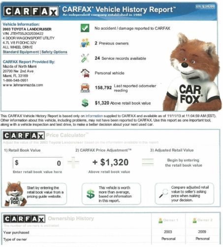 2003 Land Cruiser 4x4 Navi Dvd Carfax Certified Excellent Condition Super Clean on 2040-cars