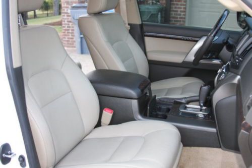This cruiser is loaded up with all options except the auto start. White with the tan leather interior. Both keys, headphones, owners manual, DVD remote, everything original and included. We purchased the Toyota Platinum warranty with this car for 100,000 miles and it IS transferable.Added a Toyota Silver pinstripe at time of purchase. Very nice effect not seen on most cruisers...