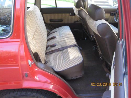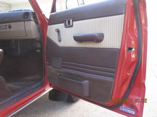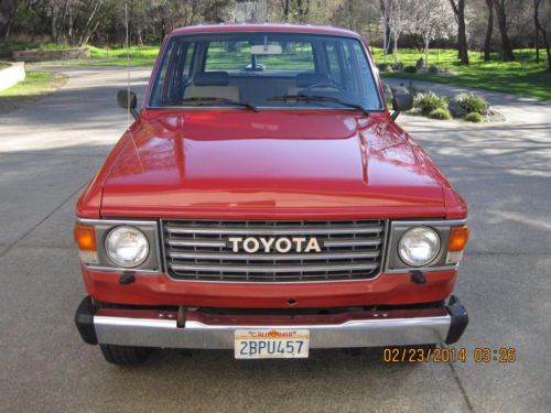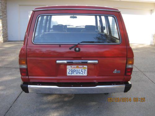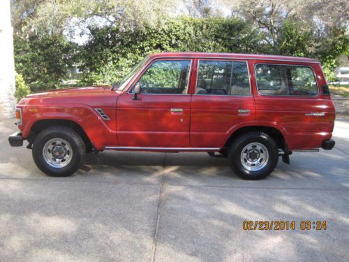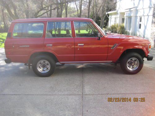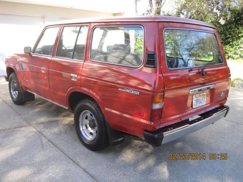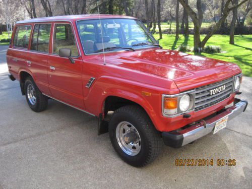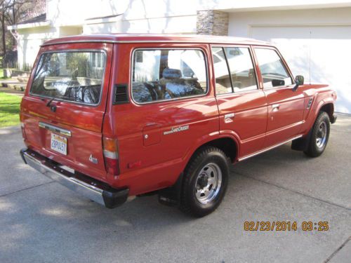 BARN FIND1984 FJ60 TOYOTA LAND CRUISER WITH JUST 88K MILES SINCE NEW. HAS BEEN IN STORAGE THE LAST 20 YEARS UNTIL A FEW WEEKS AGO. ALOT OF TIME, MONEY AND EFFORT HAS BEEN MADE TO PUT THIS CRUISER BACK ON THE ROAD WHERE SHE BELONGS INCLUDING BUT NOT LIMITED TOO: REMOVAL AND CLEANING OF FUEL TANK, REBUILT CARB, NEW BELTS, SPARK PLUGS, OIL AND ALL FILTERS, NEW RANCHO SHOCKS, NEW BRAKES, NEW WINDSHIELD, NEW MUFFLER AND TAILPIPE AND A NEW OIL PAN GASKET. TRANSMISSION WAS ALSO REMOVED TO REPLACE REAR MAIN SEAL AND FRONT INPUT SEAL OF THE TRANS. ALL WORK DONE BY PROFESSIONAL MECHANICS. INTERIOR IS ALL ORIGINAL AND AMAZING FOR THE YEAR. ONE SMALL RIP ON THE DRIVER SEAT. ORIGINAL RADIO, ALL INT. AND EXT. LIGHTS WORK. ALL DOORS AND WINDOWS FUNCTION AS NEW. ALL WEATHERSTRIPPING IS EXCELLENT. ALL THE ORIGINAL TOOLS AND JACKING EQUIPMENT ARE STILL IN PLACE. ORIGINAL SPARE TIRE. MOST PARTS UNDER THE HOOD ARE STILL ORIGINAL INCLUDING, RADIATOR CAP, ALTERNATOR, STARTER, CAP AND ROTOR AND PLUG WIRES ALL FROM 1984. PAINT IS VERY GOOD FOR ITS AGE, IT HAS SPOTS THAT ARE THIN BUT JUST HAD IT PROFESSIONALLY COLOR SANDED, BUFFED AND WAXED AND IT SHINES UP VERY WELL FOR ORIGINAL. CRUISER IS VERY TIGHT ALL AROUND AS FAR AS DOORS, WINDOWS, CONTROLS, STEERING, SHIFTER AND NORMAL DRIVING ALL FEEL EXCELLENT. TIRES ARE GOOD ALONG WITH ORIGINAL RIMS. IT HAS TILT WHEEL, AC, HEAT ALONG WITH REAR HEAT, REAR WIPER WITH WASHER, REAR DEFROST AND HEADLIGHT WASHERS ALONG WITH A WORKING FACTORY CHOKE. THE BUZZER FOR THE KEY STILL WORKS WHEN THE DOOR IS OPEN. FACTORY BLOWER FOR THE CARB WORKS AS IT SHOULD. ALSO INCLUDES A FULL CAR COVER FOR IT. ALL AROUND A VERY NICE ALL ORIGINAL CRUISER WITH RIDICULOUSLY LOW MILES. ITS ONLY GONE ABOUT 10 MILES SINCE ITS BEEN BACK ON THE ROAD, IT DOES HAVE A SMALL EXHAUST LEAK WHEN COLD THAT GOES AWAY AND LIKE ANYTHING OF THIS NATURE I'M SURE IT MAY STILL NEED SOME THINGS HERE AND THERE IF AND WHEN THEY COME UP. CALL ME AT 916-826-8218 WITH ANY QUESTIONS OR TO DISCUSS A BUY IT NOW OPTION. THANKS AND GOOD LUCK