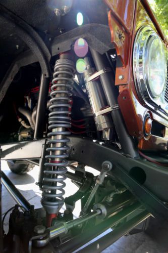 suspension were cut on a C&C machine. Adjustable rear air bags. The drive lines are custom built. This Fj40 is set up with Wilwood front and