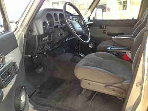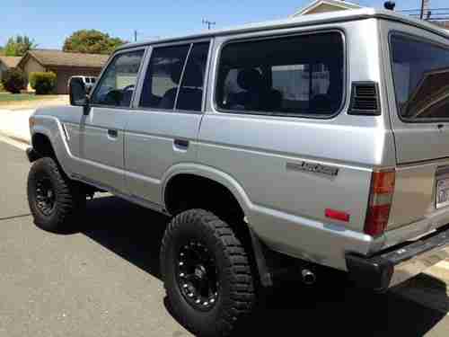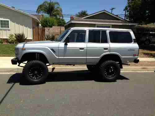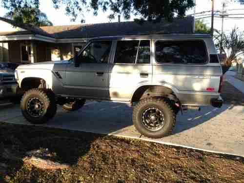 Up for Sale is my 1989 fj62- The truck is in great condition, and has been lifted correctly by a professional. This particular model comes with the rear shoulder harness, which as you know is extremely hard to find. The front has Pro-comp resouviour shocks mounted in a professional off-road hop- New tie rods (heavy duty) and ends along with sky jacker arms and pitman arms make the front end ride and stay straight. The lift is Old Man Emu. Truck interior is great- custom stereo and amps. All the chrome trim has been replaced, All the gaskets (valve Thermastat, timming chain) were just replaced. The front and rear diffs and all other fluids were just changed, the truck is smog legal in CA and it has just been registered. Has the Heavy duty radiator-so over heating is non-exsistant. All plugs and wires were replaced (with OEM) and the vehicle was just repainted a year ago. There are custom front seats, so they have zero rips in them. Over all a great truck, that has been professioanlly re-done and it is a definate head turner. Needs carpet in the rear- and a knob or two-The lift and the wheels and tires were $6000,00 alone! Speaking of wheels and tires- the tires have 99 perscent of tread left and the wheels are XD with the teflon coating. Any questions please feel free to ask. The truck is for sale locally so I do reserve the right to end the auction early. eight zero five two six three three eight nine two -