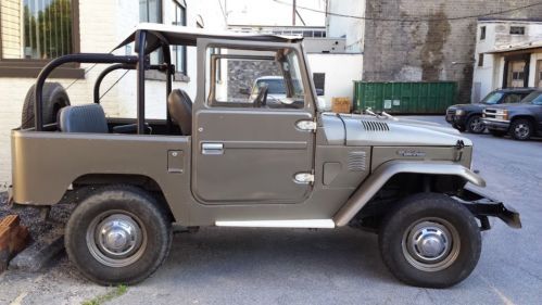 For sale is a fully restored 1972 J-40 Toyota Land Cruiser. It is military green with black interior. It is fully lined with Rhino liner. The body has 72,000 miles and has been fully restored. The engine runs great! This vehicle is sold as is and as shown with no warranty