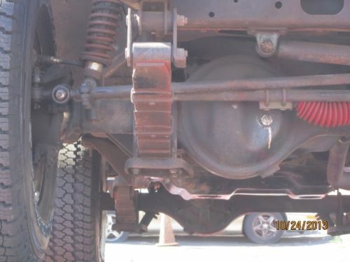 This Toyota's suspension consists of rugged solid axles and leaf springs, shackels and coil over shock absorbers at both ends. At the back of the truck's frame you will find bumperettes flanking a hitch for light towing. Under it all you will find 15 inch white spokes with new 31x10.5 R15LT and Warn hubs.