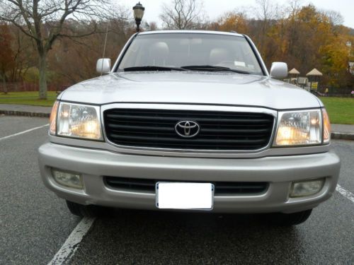 1999 TOYOTA land cruiser 4WD ORIGINAL OWNER NON SMOKING FROM DAY ONE. NO PETS. NEVER IN AN ACCIDENT. CLEAN CAR FAX .CLEAR TITLE. this car was never used in any OFF ROAD driving conditions. Has been garaged kept most of the time and used around long island for daily driving for the family. 100k miles service was done also. timing belt, water pump, complete tune up ,4 new routers discs and brakes as well. Drives 100% very smooth transmission and powerful engine, as if it has 50,000 miles . performance & safety features: full time 4 wheel drive with REAR DIFFERENTIAL LOCK. 4 wheel ventilated disc brakes and 4 wheel anti lock brake system. factory installed towing package with transmission oil cooler. daytime running lights.driver and passenger air bags. comfort features : All power locks and windows. leather seats with heated front seats . heated outside mirrors. power sunroof.power front seats .rear window deflector. roof rack.running boards. factory fog lights. abs light is on Automatic climate control with 3rd row heater and A/C control. great sound system with CD player. 4 BRAND NEW TIRES was intalled on 11/16/13 also included 2 michelin tires with 50% tread life .see pics . All the books and 4 keys ....(2 with remote controls ). serious inquiries please . clean and clear title in hand ready to go. first fair offer will have a great chance to own a great luxury SUV with low miles. feel free to contact for any questions. 516-655-5666 |