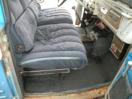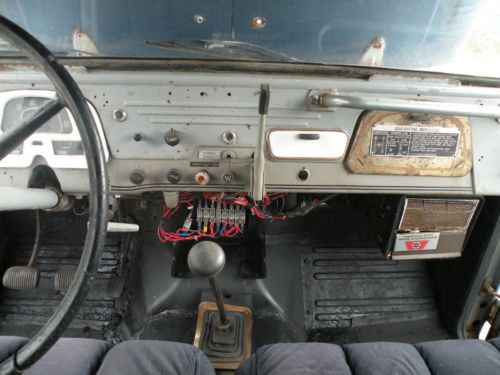 The truck comes nearly complete, the only parts I saw missing were light lens, one of the seats, rearview mirror, rear emblem, couple broken window cranks, Comes with one original (at least that is what I was told) bench seat, not sure if it is the front or rear seat Comes with the heater that goes where the wiring breaker is in the center below the dash Comes with a original spare tire holder and original split rim All glass is there and in good shape The dash is in really good condition I have found no collision damage other than the hood has a dent The engine appears to be original and complete The truck has rust that needs to dealt with. The worst part is the front floor under the seats, the rear sill, and the rear lower quarter panels. The front part of the floor under seats will need to be replaced. I have found zero bondo, basically what you see is what you get. I pulled out the headliner and carpet to expose as much as possible. I have not tried to start the engine and am not going to try and start the engine. I dont know if it runs or not. I have a nice set of Landcruiser split rims with tires that I am willing to sell separately if the buyer wants them. Its located in sunny San Diego and you are welcome to stop by and have a look in person. I will help with loading the truck for shipping but the shipping details are the buyers responsibility please do not ask me how much it will cost to ship it to you. On Mar-03-14 at 23:10:42 PST, seller added the following information: I never see FJ45LV Landcruisers up for sale basically anywhere so I was shocked to see two other ones for sale on Ebay. I was really interested to see high the bidding would go but both guys closed their listings before the auction was completed. As a regular buyer on Ebay its really annoying when people pull their trucks early, especially when they have it advertised with no reserve price. Ive been getting offers to sell my truck outside of Ebay as well but Im not going to do that. Im going to let it ride til the end of the auction. So if youre genuinely interested throw in a bid... by the end of the week someone will be buying this FJ45LV. |