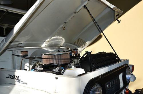 The FJ45 comes to you in near perfect condition. It went through a full frame off restoration within the last ten years. The original Toyota paint code T403 Lily White, was used, the cap and front headlight ring are the correct off white Toyota used for their trim and was just reapplied this past month, as was the interior silver trim on the inner door panels, dash cluster and glove box. Rims are powder coated the correct Pewter, and with newer Toyota Hub Caps. The front end sports a WARN winch with new nylon rope and stainless tow hook. Under the 45 you will find the under carriage in near flawless condition. Stainless exhaust in new condition. Shocks, leaf springs, gas tank, cables, all in excellent condition. The frame is completely rust free as is the entire vehicle.