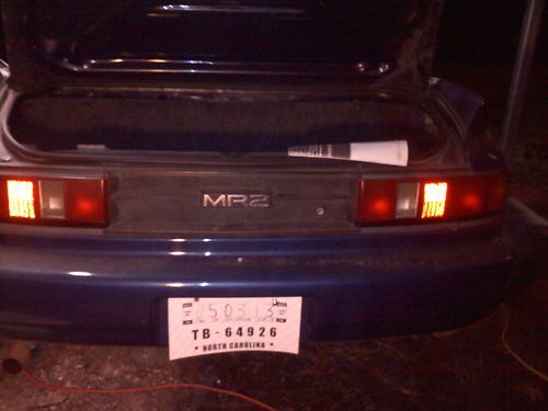 1991 toyota mr2 . naturally aspirated. showing 220,000 but still runs great. very powerful and shifts smoothly with no grinding at all. new icw racing kamikaze rims , 2 new front tires 2 rear matching tires with at least 40% tread remaining. kenwood cd player with sirius radio. has t tops that do not leak. veilside style body kit with front bumper fiberglassed and moulded in for no seams. paint is recent and decent, requiring maybe only a light wet sanding and polish to be really nice. still shines well as is. newly tinted windows , white faced gauges and the interior is in decent condition for a 22 year old car. no cracks in the dash and there was some damage to the drivers seat which i repaired myself. not professional but not bad either. i built this car for my daughter but she just cant get the hang of a manual transmission, and really im afraid it is just too much car for her to be her first one. i started with decent car that the previous owner had struck a deer with. the damage was only cosmetic having to replace only the passenger t top, hood, passenger fender and front bumper cover. i still have these parts to show the damage and a picture of what it looked like before i started. i did not plan to sell the car nor do i have to but i already have a 2 seater and have a family of five. so while having one 2 seater is impractical .... 2 would be ridiculous, according to my wife lol. there has been a ton of work done , and many late nights that turned into early mornings. as i said earlier, it was intended for my daughter so it was not just thrown together to make a quick buck on. there are new brake pads both front and back and cross drilled rotors up front. previous owner installed f 1 stage 2 clutch. as well as it runs its hard to believe it has 220,000 miles. all it needs is a driver. drive as is or drop in a turbo motor and have a real pocket rocket. even without a turbo its no slouch. call 828 777 6635 for any questions you may have or for a picture of something specific. will consider PARTIAL OR FULL trades on old gm or mopar projects , mid 70s trans am?). this is a 22 year old car and is by no means perfect but would be a great daily driver or perfect for a college student. reserve is priced fairly for this type of car. potential buyers are welcome to come inspect before bidding.