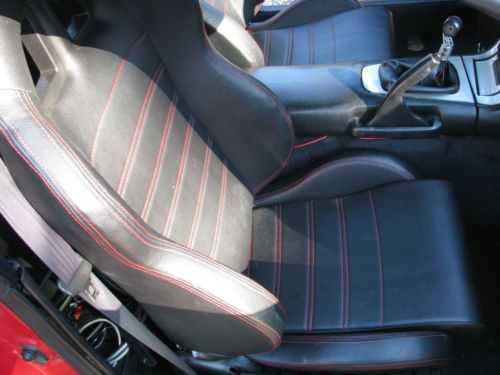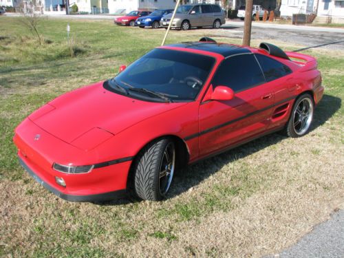 FOR BID AT NO RESERVE IS A VERY NICE TOYOTA MR2 WITH A LOT OF SHOW OPTIONS...CERTAINLY NOT A RACED CAR, BUT A NICELY APPOINTED SHOW CAR WITH A GOOD BIT OF MONEY SPENT ON MAKING IT LOOK NICE....LORENZO WHEELS WITH REMINGTON TIRES REALLY SET THIS CAR OFF....NOT SURE ABOUT THE SEATS, BUT THEY LOOK TO BE CUSTOM RACING SEATS WITH THE DOOR TRIM REDONE TO MATCH...SHIFTER HAS A NICE LOOK TO IT AND THE COLOR COMBO IS GREAT...T-TOPS,,,,,LIKE NEW TIRES,,,AND JUST GREAT LOOKING,,,,,,,INTERIOR IS LIKE NEW AND THE EXTERIOR HAS ONLY SLIGHT FLAWS..........RIDES GOOD,,,SHIFTS GOOD,,,,AND LOOKS GREAT,,,,AIR INTAKES ARE SHOW,,,ENGINE IS STOCK....RADIO WILL NEED TO BE SPEAKERED UP,,,WIRING IS THERE.....CLUTCH IS SMOOTHE,,,SOFT,,,AND THE ENGINE IS STOCK. THE ADD ONS ARE WORTH WHAT I WANT FOR THIS CAR....THANKS..DRIVE THIS CAR HOME AND SPEND A FEW DOLLARS MORE,,,,YOU WILL LIKE THIS CAR....FLY IN AND PICK UP IS NO PROBLEM,,,RED IS FOR CHRISTMAS HAVE A GREAT ONE....,,DRIVE IT HOME CALL ME 443-326-8853