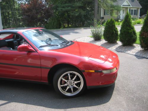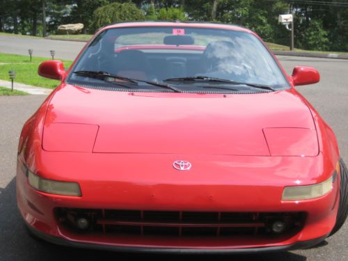 WHEN INTRODUCED IN 1991, THE REVOLUTIONARY TOYOTA MR2 TURBO MID ENGINE COUPE WAS HAILED BY THE MAJOR CAR MAGAZINES AS "THE MOST BANG FOR THE BUCK" OF ALL SPORTS CARS OF ITS TIME - THE REVIEWS CITED THE STRONG AND RESPONSIVE POWER, EXCEPTIONAL HANDLING, FERRARI LIKE DESIGN AND THE PURE JOY OF DRIVING THIS EXCITING NEW MODEL - ONLY A LIMITED NUMBER WERE IMPORTED AND TODAY MANY PERFORMANCE CAR ENTHUSIASTS ARE STILL UNAWARE OF THIS INCREDIBLE DRIVING MACHINE - AND THIS IS THE ONE TO HAVE !! - New leather seats red and black NEXT total drive train overhauled THE FINAL STAGE INCLUDED THE REPLACEMENT OF EVERY MECHANICAL COMPONENT AND WEAR ITEM ON THE VEHICLE, UNLESS THE EXISTING PART WAS LIKE NEW - THIS INCLUDED BRAKES ALL AROUND, STEERING SYSTEM, SUSPENSION SYSTEM, EXHAUST SYSTEM, NEW MATCHING SET OF HIGH PERFORMANCE TIRES, TUNE, MOBIL 1 SERVICE AND MORE - EVERYTHING HAS BEEN DONE - MECHANICALLY THE CAR IS AMAZING - THE EXTERIOR IS DONE IN STUNNING MIRROR FINISH Red- THE INTERIOR IS IMMACULATE - THIS VEHICLE IS HIGHLY OPTIONED AND RADIO, ALL POWER OPTIONS THE VEHICLE HAS ALWAYS BEEN GARAGE KEPT, METICULOUSLY MAINTAINED, PAMPERED BY ITS OWNER AND NEVER IN WEATHER OR SMOKED IN - THIS IS THE ONE |