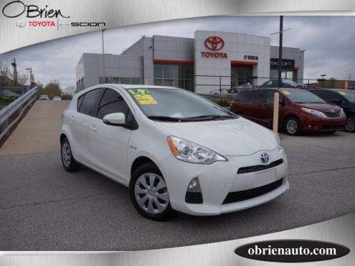 Familiarize yourself with the 2012 Toyota Prius c! Generously equipped and boasting stylish interior comfort, this vehicle challenges all competitors, regardless of price and class! Toyota prioritized fit and finish as evidenced by: tilt and telescoping steering wheel, rear wipers, and more. It features a continuously variable transmission, front-wheel drive, and an efficient 4 cylinder engine. Our experienced sales staff is eager to share its knowledge and enthusiasm with you. We'd be happy to answer any questions that you may have. We are here to help you. If saving money is important to you, visit O'Brien Toyota Scion, Indy's only 13-time President's Award-winner! We always have a great selection of new and used vehicles with low prices and professional customer service. Come see how "Our Family Works for You! Since 1933." For special internet pricing contact Steve Kovacs, Internet Sales Manager, at 877-574-3152.