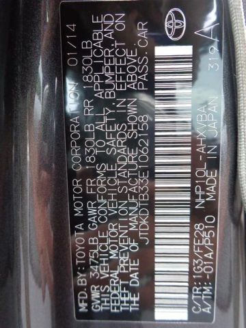 VIN (Vehicle Identification Number): JTDKDTB33E1062158