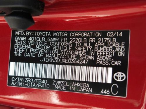 VIN (Vehicle Identification Number): JTDKN3DUXE0364247