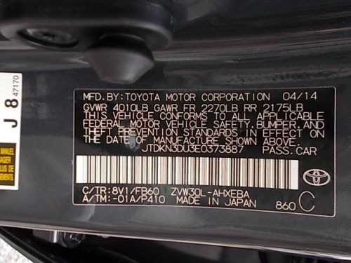 VIN (Vehicle Identification Number): JTDKN3DU3E0373887