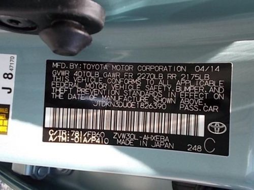 VIN (Vehicle Identification Number): JTDKN3DU0E1826390