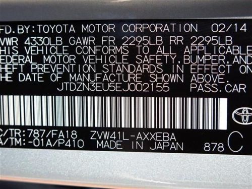 VIN (Vehicle Identification Number): JTDZN3EU5EJ002155