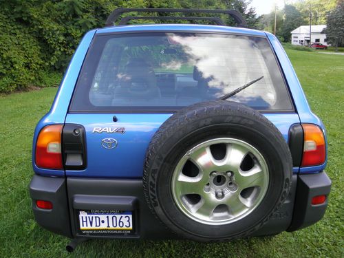 UP FOR SALE IS THIS NICE 1997 TOYOTA RAV-4. THIS CAR WAS ORIGINALLY FROM ALLENTOWN PA, AND I BOUGHT IT 3 YEARS AGO WITH 85,000 MILES ON IT . IT IS A VERY, VERY CLEAN EXAMPLE OF A 1997 RAV-4. IT HAS BEEN PERFECTLY MAINTAINED AND I HAVE RECEIPTS ON ALL WORK PERFORMED. TIMING BELT, WATER PUMP REPLACED LAST YEAR. AS WELL AS TRANSMISSION SERVICE, COOLANT FLUSH, MAJOR TUNE UP, BRAKES, EXHAUST, SUSPENSION. NO RUST, NO MAJOR DINGS OR DENTS, NON SMOKER, NO PETS, AND I BELIEVE IT TO BE A NON SMOKER CAR BEFORE I BOUGHT IT BECAUSE THERE WERE NO SMELLS OR BURN HOLES OR STAINS ETC. IT IS JUST A VERY CLEAN WELL MAINTAINED VEHICLE THAT NEEDS NOTHING. THERE IS PROBABLY ANOTHER 10,000 MILES LEFT ON THE TIRES, SPARE IS 75%. AM, FM, CD WORK PROPERLY. ALL POWER OPTIONS WORK, DRIVERS WINDOW IS SLOW BUT FUNCTIONS, AC BLOWS ICE COLD, HEAT BLOWS HOT. PA INSPECTED UNTIL MAY OF 2014. SMALL IMPERFECTIONS IN THE PAINT AS SHOWN IN PICTURES. NO ACCIDENTS, NO REPAINTS, AND STILL HAS ORIGINAL BODY PANELS. NO FLUID LEAKS OF ANY KIND.