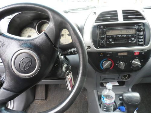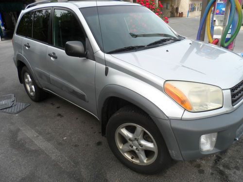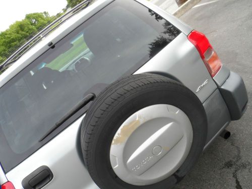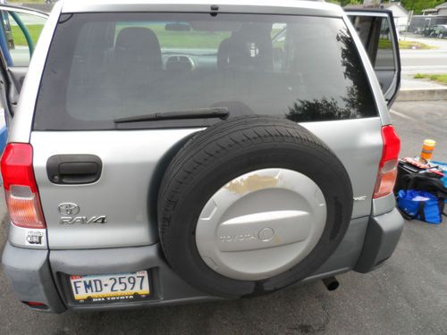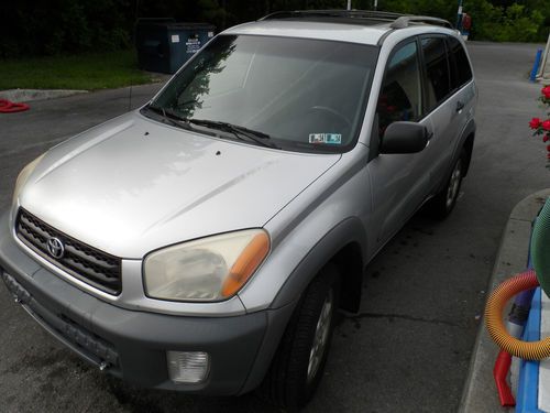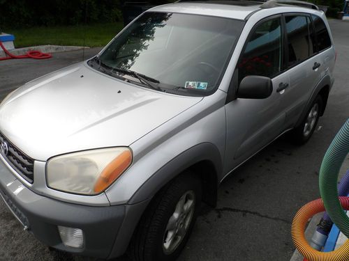 2001 Toyota Rav4 SUV, a little less than 245,00 miles, mostly highway miles All wheel drive (AWD), air conditioning/ heat work well, power windows/ locks, Remote Keyless entry, CD player, power moonroof. Car has a timing chain which does not need replaced. Car has brand new tires purchased in december, new radiator in last 6 months, new battery in last 6 months. All major services completed and only dealer serviced since purchased at 30,00 miles. I am the 2nd owner and the car was a lease prior to my purchase. Car has good PA inspection until 2/2014. Car is in driveable condition but check engine light is currently on. Light was reset about 2 weeks ago, went off again recently and was told that is is the catalytic converter at the dealership. There are a few small dings and dents and a few small areas of rust on the hood where rocks dinged the hood and a small area on the backside as depicted in the pictures. There is a light clear coat scraping on the passenger side (passenger side scraped against mailbox). THIS VEHICLE IS IN AS IS CONDITION. It is for local pickup only. We are located in Coatesville, PA which is about 30 miles west of Philadelphia between Philadelphia and Lancaster. Please email with questions, thanks for bidding.