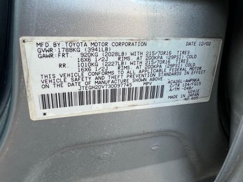 VIN (Vehicle Identification Number): JTEGH20V730097745